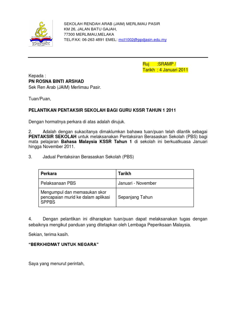 Cikgu mahsal buat surat lantikan ajk tertinggi dalam pbs terlebih dahulu. Perlantikan sebagai pentaksir sekolah 2017. Contoh surat tawaran kerja kerajaan.